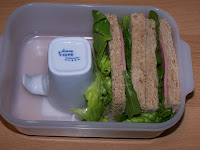So und jetzt zeige ich wie man alles im Bento-Stil zurecht macht. Die "Bento-Box" ist eine normale Brotdose, die man für 1,49 € in normalen Supermärkten kaufen kann.