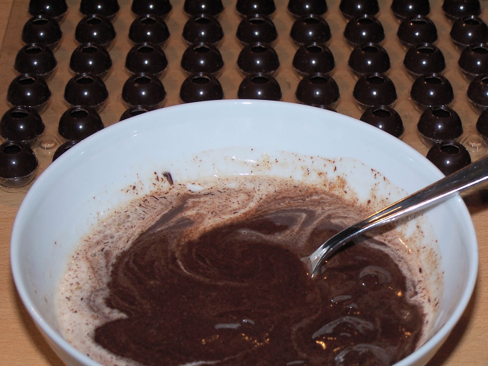 Über Nacht fest werden lassen und die Hohlkörper mit etwas Kuvertüre verschließen und trocknen lassen.